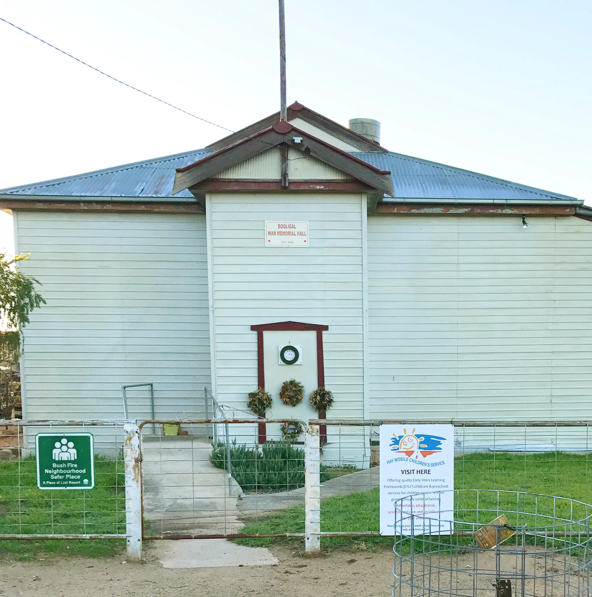 Built in 1936, and located in Lachlan Street, the Booligal War Memorial Hall can be used for a variety of functions from meetings to community events. NO CAMPING ON GROUNDS