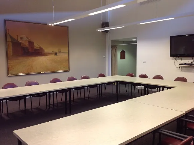 Built on the site of the old RSL Hall, and located at the Kay Hull Community Centre at 204 Lalchan Street in the Library Complex is a medium sized meeting room that can seat up to 30 people around tables, or more if arranged in a group seating style. The RSL Room has a whiteboard, flat screen TV for presentations and functional kitchen.